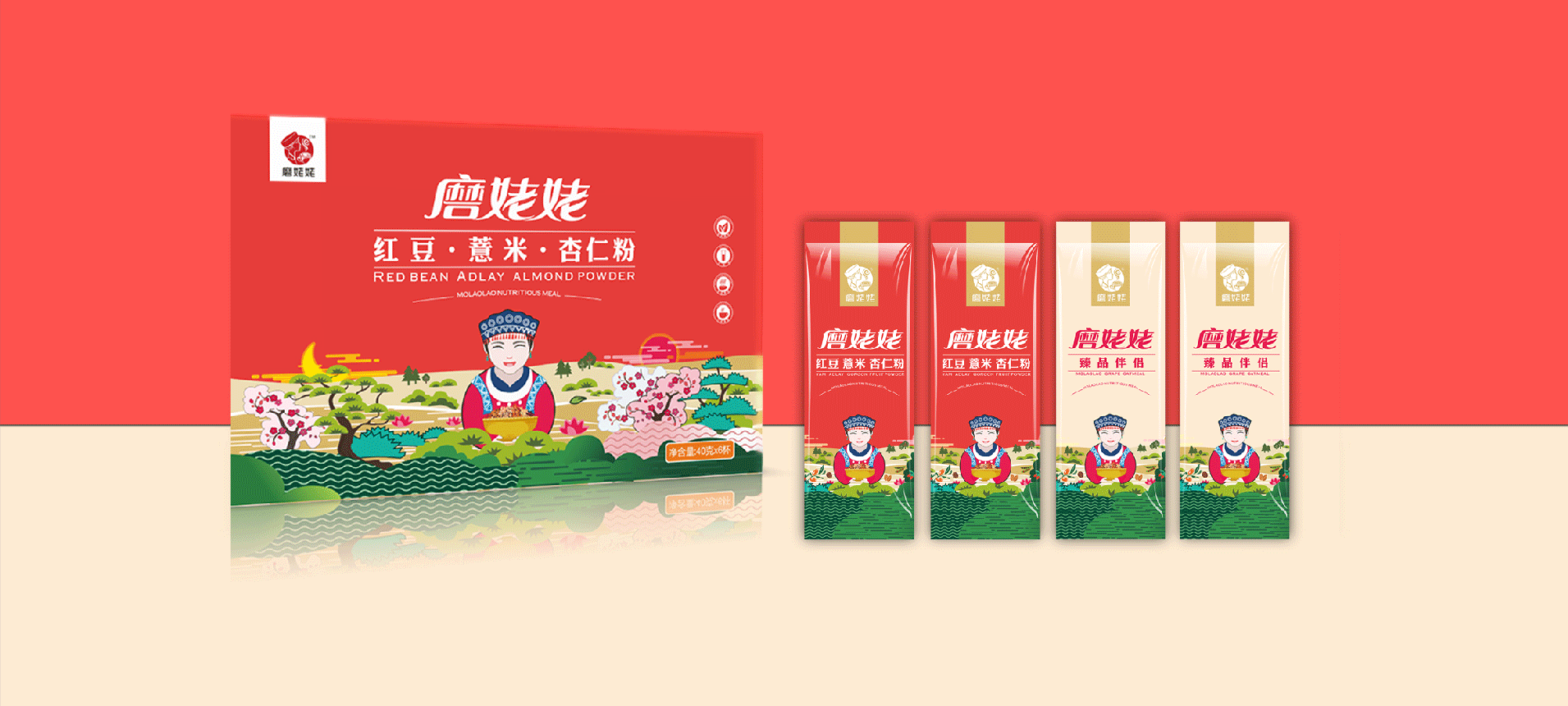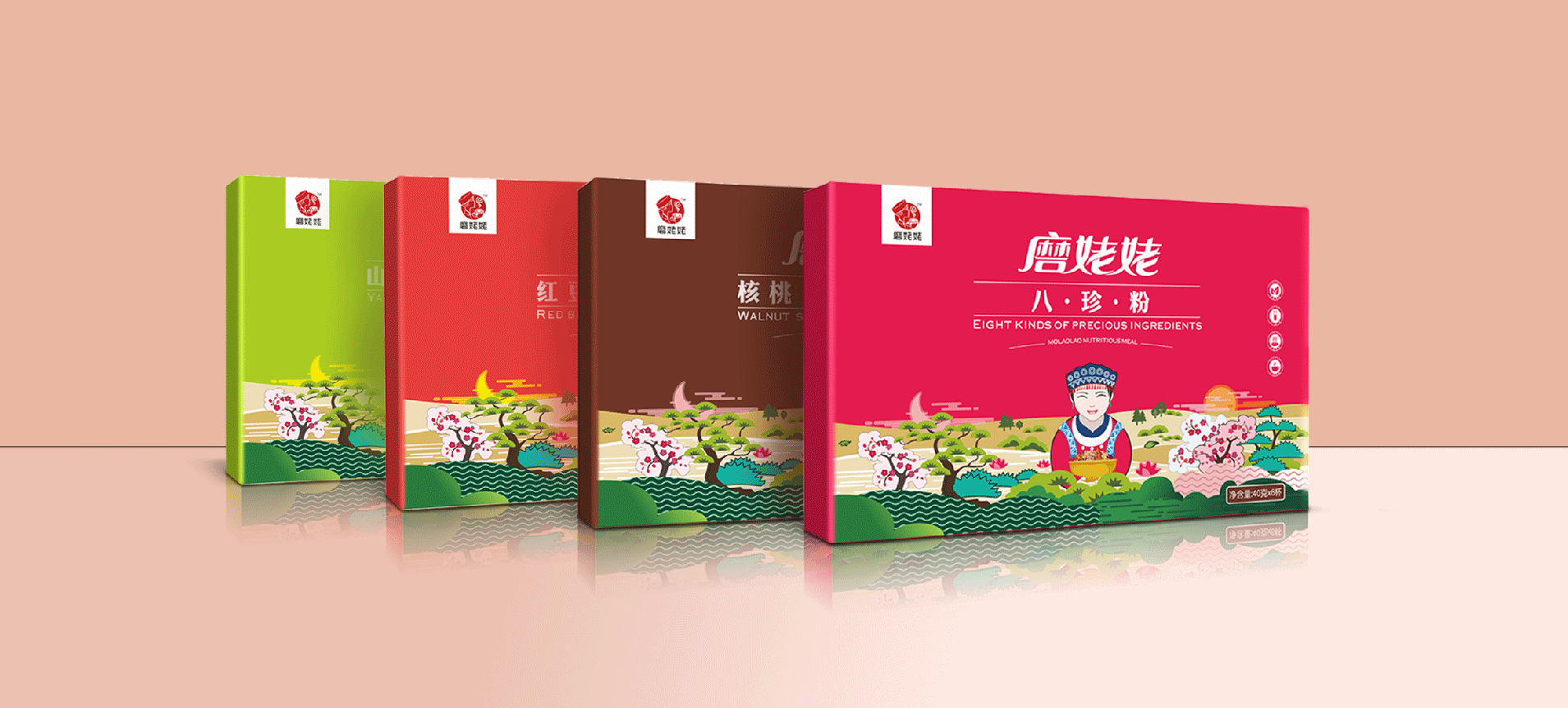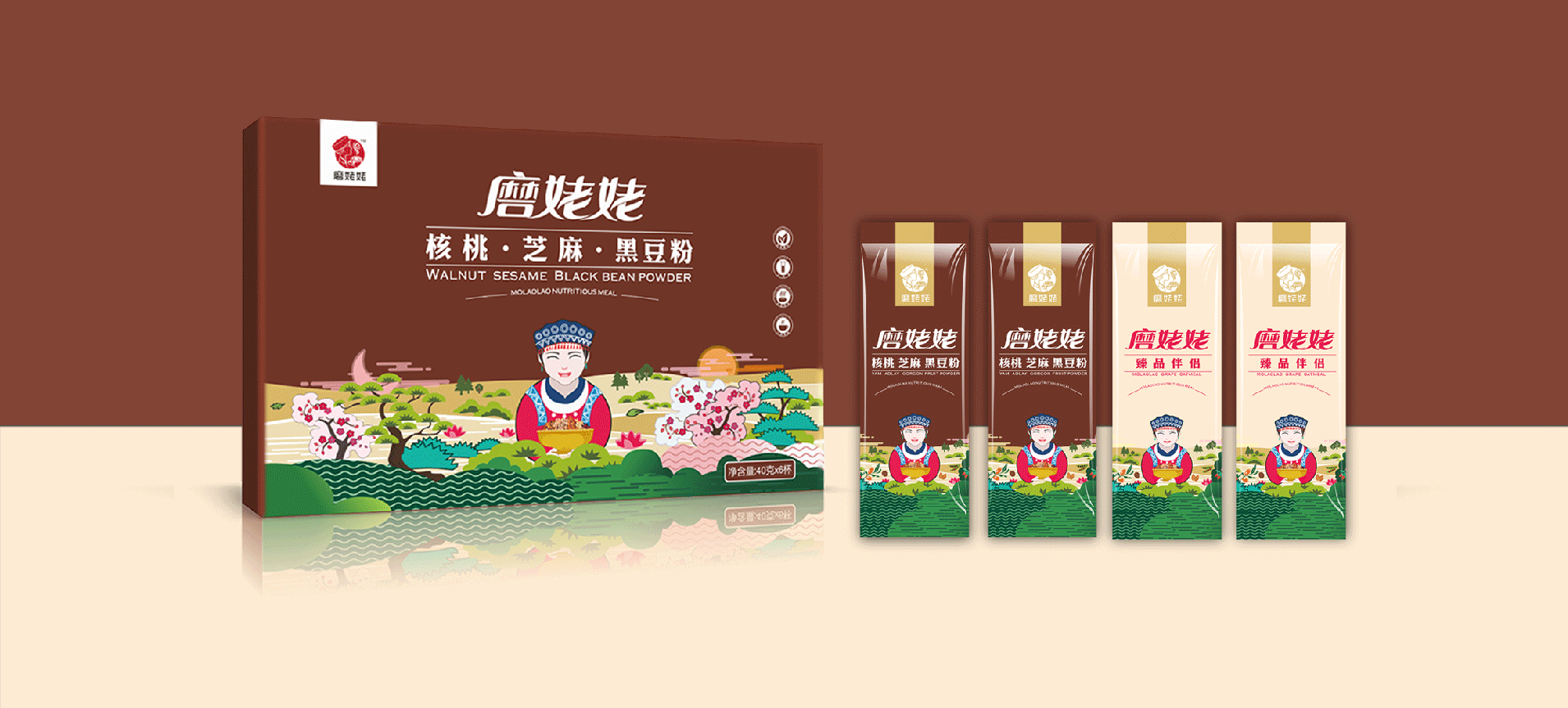 武漢金湘緣食品商貿(mào)有限公司主營(yíng)五谷雜糧粉,創(chuàng)立品牌“磨姥姥”,根據(jù)傳統(tǒng)食補(bǔ)養(yǎng)生文化,推出一系列五谷雜糧的養(yǎng)生食品。公司在全國(guó)各大商場(chǎng)均設(shè)有專(zhuān)柜,現(xiàn)場(chǎng)磨制,有深厚的市場(chǎng)認(rèn)知。我們與金湘緣攜手,為磨姥姥聽(tīng)過(guò)品牌包裝策劃設(shè)計(jì),幫助“磨姥姥”提升品牌形象,提高產(chǎn)品銷(xiāo)量,從而為更多的人帶來(lái)健康。