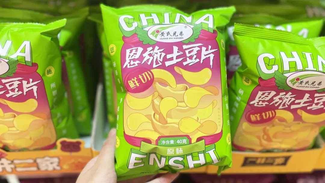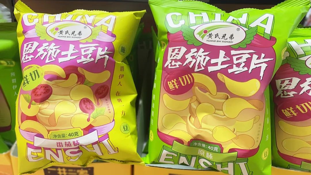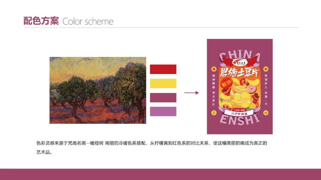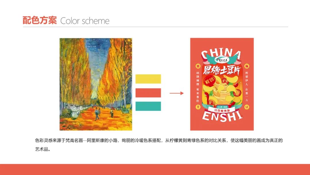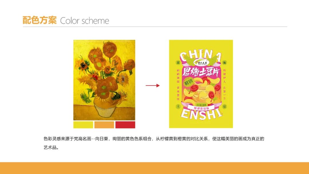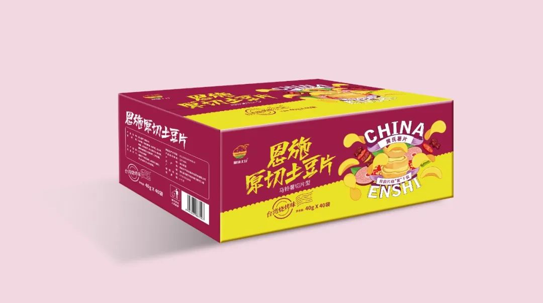 在字體選擇上,我們首先嘗試了比較粗的方正字庫黑體字。在和主標(biāo)標(biāo)簽匹配后由于此款字體的字重太粗,放在一米開外測試發(fā)現(xiàn)識別不清,主要是筆畫太粗反而影響了閱讀識別,且字形整體生硬厚重,不太適合調(diào)性。經(jīng)過分析思考,我們選擇了以手寫體為基調(diào),體現(xiàn)文化感,它骨骼清晰,更易識別。方向找準(zhǔn)后,在此基礎(chǔ)上進(jìn)行加工修正。恩施土豆片產(chǎn)品的特性為年輕、時尚、潮流、個性化張揚的字體和產(chǎn)品整體氣質(zhì)很吻合。