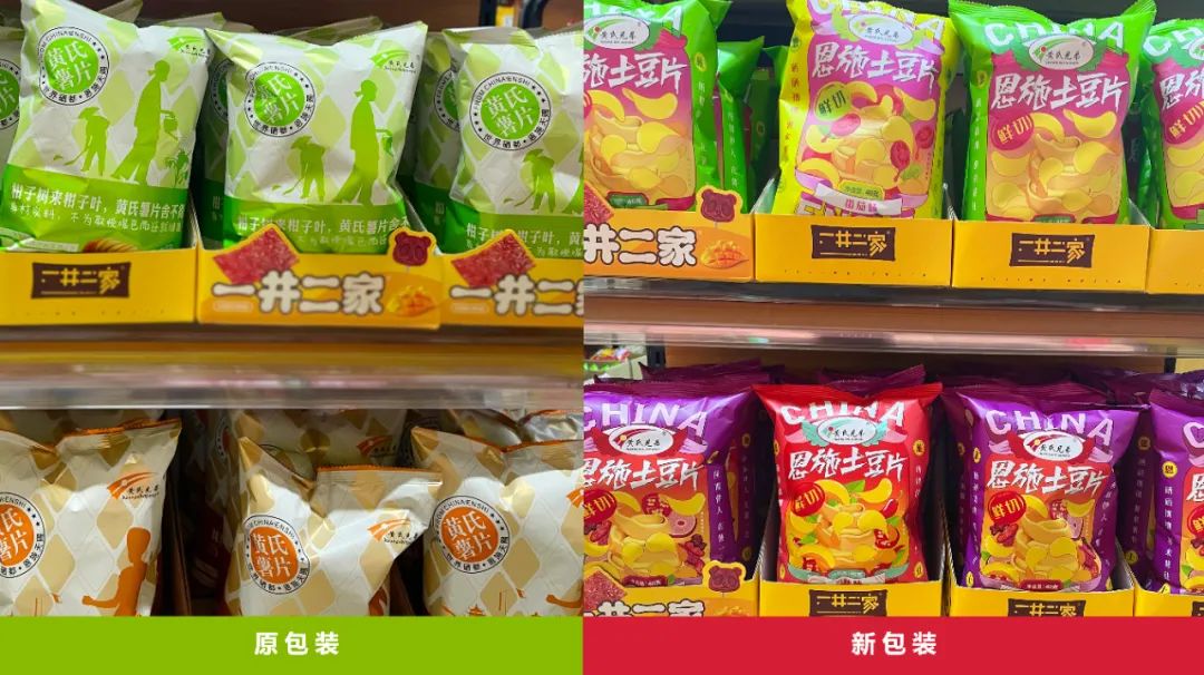 黃氏薯片的核心賣點在于鮮切、產(chǎn)地恩施,產(chǎn)品包裝上沒有去強(qiáng)調(diào)這種稀缺性。沒有形成”品牌高端化認(rèn)知”沒有賣點,同質(zhì)化競爭激烈,所有薯片都是一副面孔,如果不看品牌,買誰家都一樣。在新產(chǎn)品包裝規(guī)劃中,我們核心做好3件事—建立產(chǎn)品認(rèn)知,形成品牌記憶,穩(wěn)固“稀缺的賣點”形成資產(chǎn)。